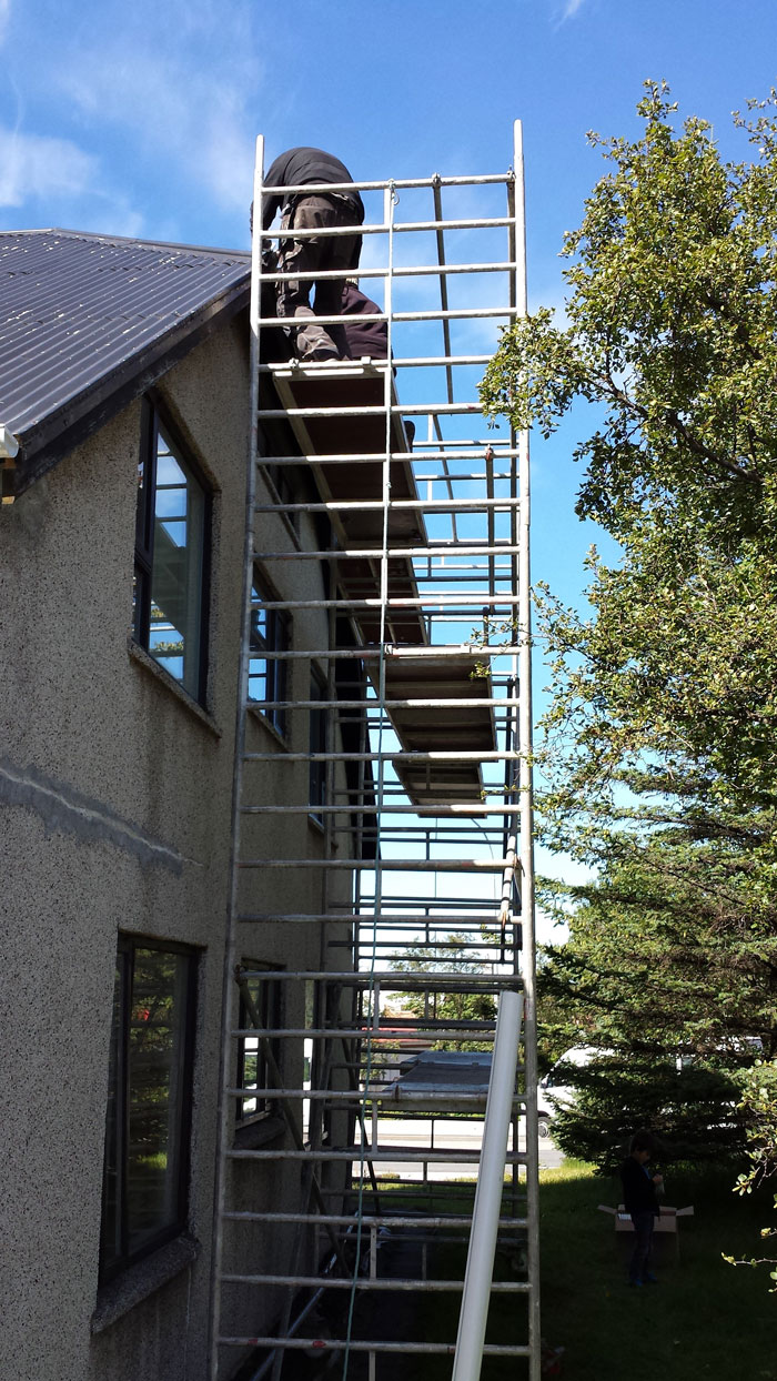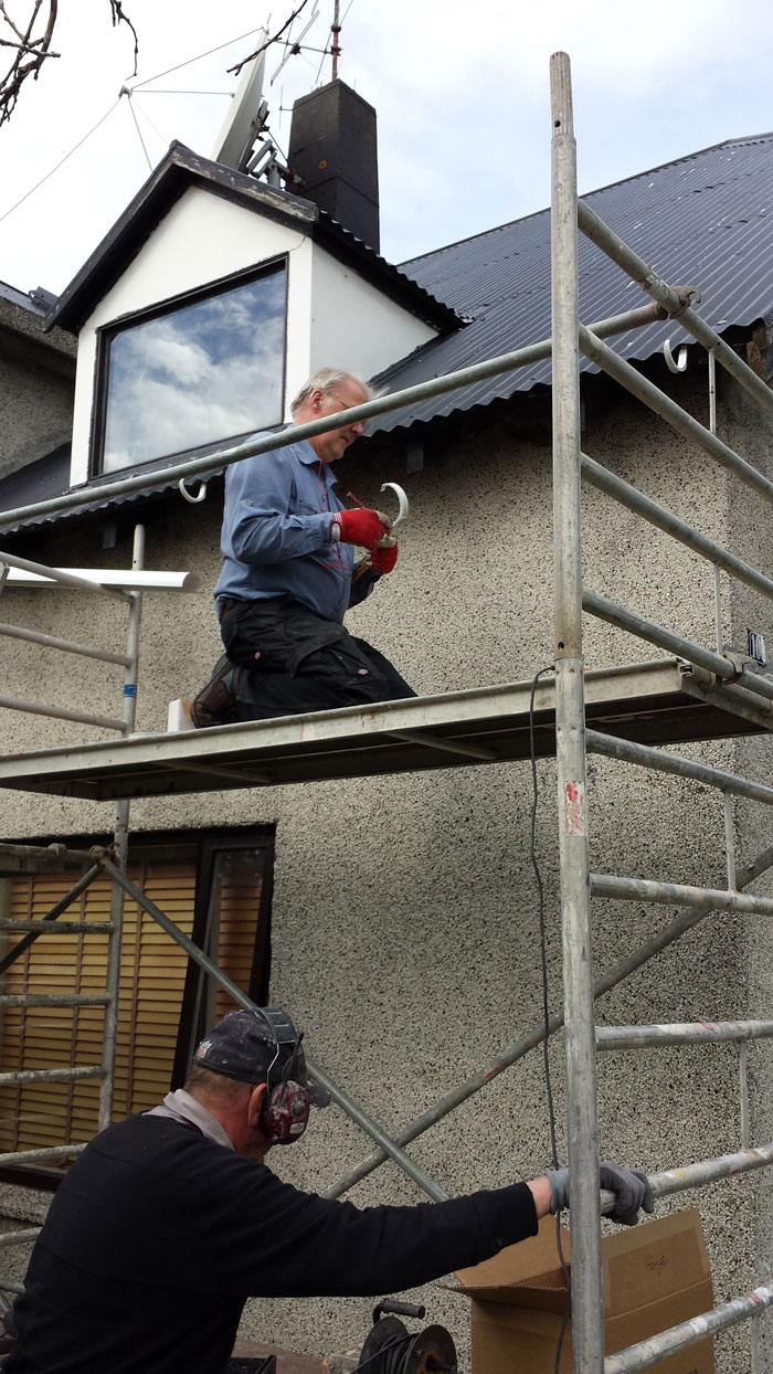 Skipt um rennubönd, þakrennur og fleira.